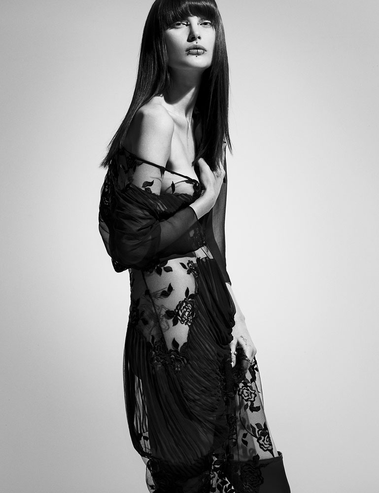 Fétiche - Black and white imagery captured by Tom Munro showcases in fetish-inspired looks the beauty of Catherine McNeil for the March issue of Numero Magazine, with styling by Charles Varenne.